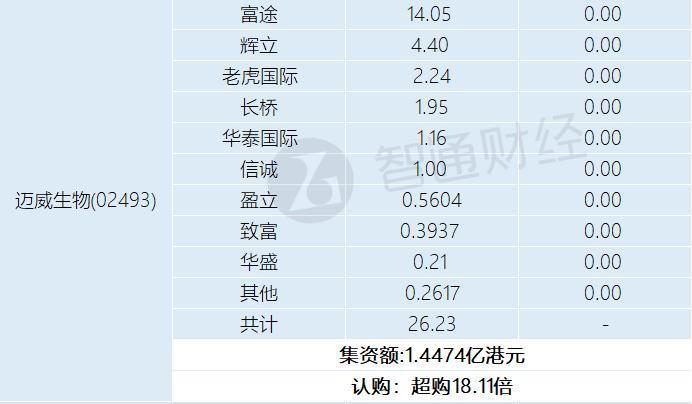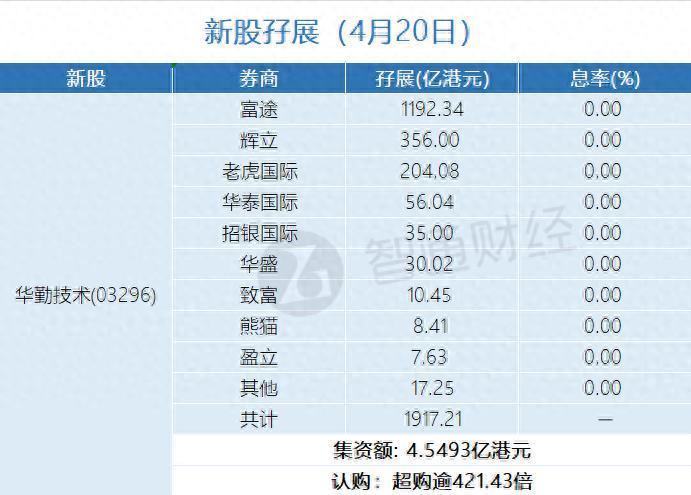 智通财经APP获悉,华勤技术(03296)、曦智科技(01879)、迈威生物(02493)正在招股中。截至4月20日,富途证券、辉立证券等券商为华勤技术借出1917.21亿港元,超购逾421.43倍;为曦智科技借出458.8亿港元,超购逾363.07倍;为迈威生物借出26.23亿港元,超购逾18.11倍。